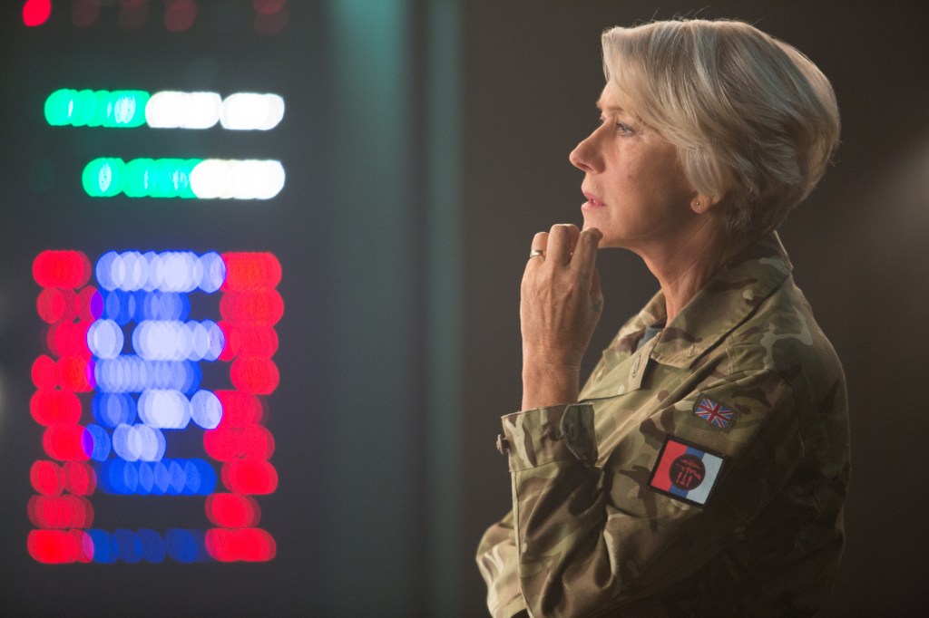 Esse momento em que a tecnologia se sobrepõe à ação é enfatizado no título original de “Decisão de Risco” – olho no céu. No filme, o Quênia é observado de cima na operação liderada pela Coronel Katherine Powell (Helen Mirren), que acredita finalmente ter obtido a pista correta sobre o local em que estão escondidos três dos terroristas mais procurados no leste africano.