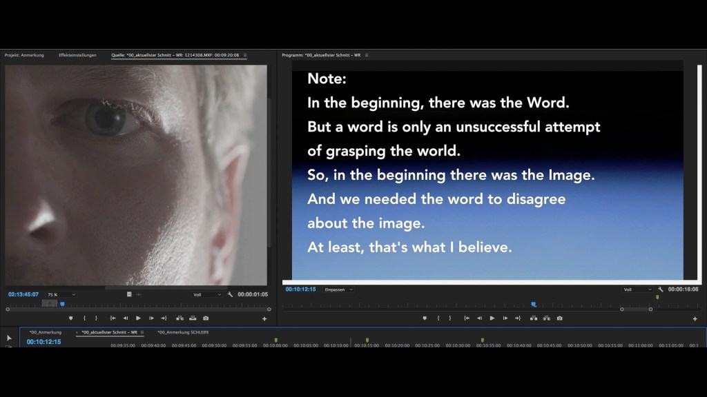 A desorganização da vida do protagonista é refletida em uma estrutura narrativa confusa, com a opulenta voz de Wyss, que é mais conhecido pela sua atuação como músico, operando como devaneios sobre o poder da imagem. Reflexo da relação de Rahm com a abundância de equipamentos e capturas que o rondaram em sua articulação prévia como realizador e montador de seus próprios projetos na empresa de comunicação que gerencia.
